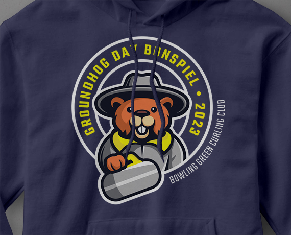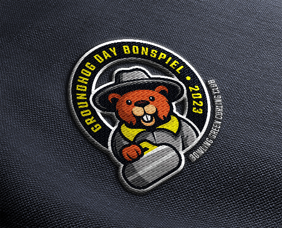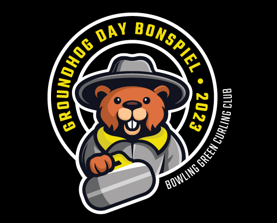 Logo design for the Bowling Green Curling Club's Groundhog Day Bonspiel. The bonspiel (curling tournament) takes place on the nearest weekend to Groundhog Day each year. The club utilizes yellow and red handles on their curlings stones which helped drive the color scheme for this version.