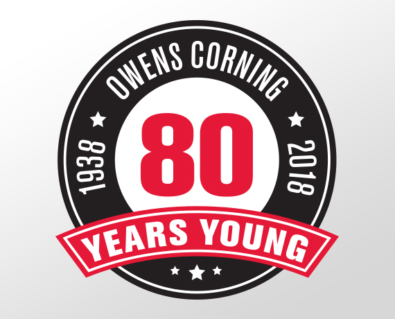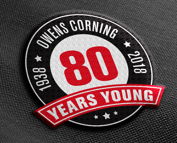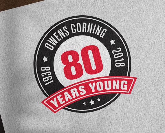 Logo design for Owens Corning 80th Anniversary. The logo was used on various pieces for Owens Corning's 80 years of existence celebration. The design was also turned into a physical 3D tee box marker for a golf event.