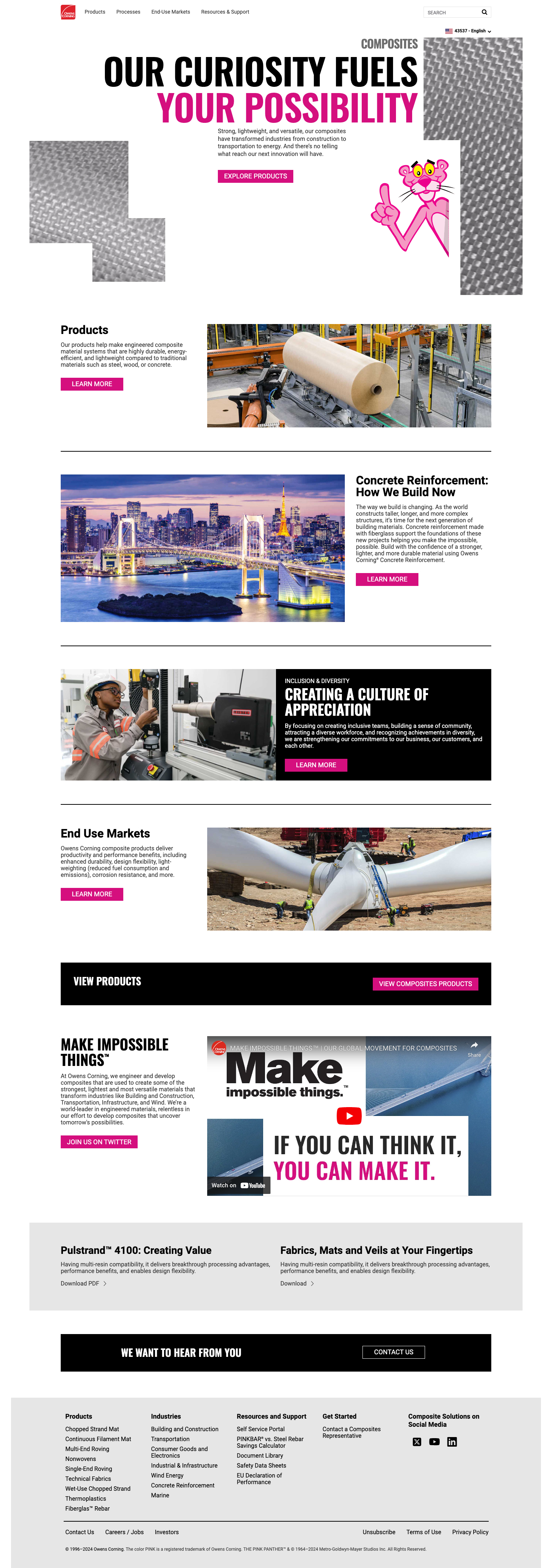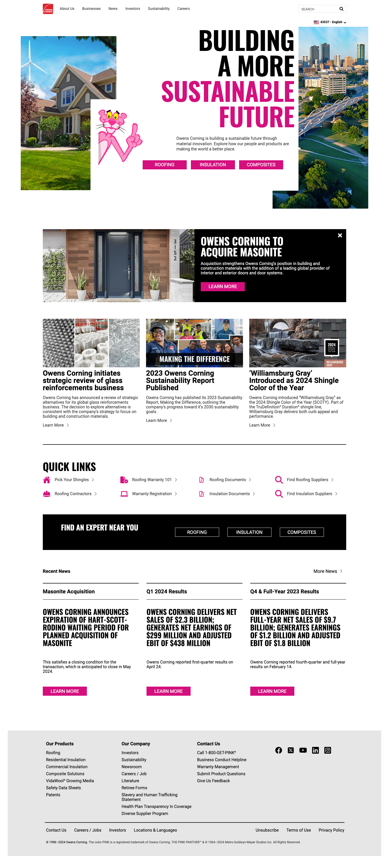 Design for the Owens Corning website based on a brand refresh implemented in early 2018. The website needed to be redesigned to follow the updated brand guidelines. The designs were created to fit the existing 12-Column site structure which would allow the entire Owens Corning website to quicky be updated to the new layouts by utilizing style sheets and the CMS. Various templated components were created with the development team so that users would have the ability to drop and drag components to create page layouts that were flexible to the content.THE PINK PANTHER™ & © 1964–2024 Metro-Goldwyn-Mayer Studios Inc. All Rights Reserved.